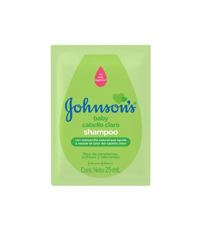 Champú Johnson’s Baby Cabello Claro, fórmula suave que realza el brillo natural, libre de parabenos, sulfatos y colorantes – Sobre de 25 ml.